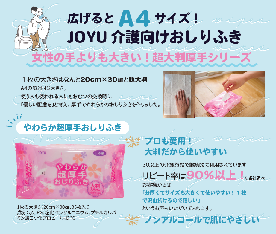 Amazonでも大好評なJOYUシリーズの介護用おしりふき。 お試しいただきやすい3個パックでの販売もスタートしました。